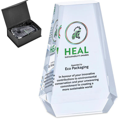 The Hubris Award is a stunning recognition award crafted from high-quality optical glass. It stands tall at 23.3cm in height and has a width of 6.3...