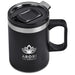 Keep your hot beverages hotter for longer with this sturdy double-wall mug from Custom Brands. It has a BPA-free, food grade plastic inner, and a stainless steel outer wall. This construction, combined with the EVA base pad, also ensures you don’t need a coaster to protect your desk or table surface from the heat. The press-on lid helps to prevent spillage when you’re walking with the mug, or should you knock it over. Slide the slider of the lid to open and close the drinking port. Consider laser engraving your logo or message, which will come out in a shiny silver to match the ring at the top of the mug.