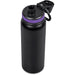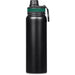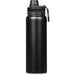 The bottle base is made from strong and durable BPA-free stainless steel with a black powder-coated finish. It has a double-wall vacuum construction, which ensures that liquids inside stay hot or cold for hours.