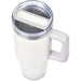 Designed for hot or cold drinks, this substantial mug will preserve the temperature of the liquid inside it for hours on end. The comfortable handle makes the mug easy to hold and carry, and it has a sturdy, tapered base, which fits into the cup holder of a car. The double-threaded screw lid can be applied for left or right-handed drinking. Use the straw for cold drinks or sip through the lid for hot drinks.