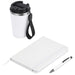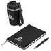 A stainless steel & plastic double-wall tumbler with a secure, screw-on lid and an optional carry loop is combined with an A5 hard cover notebook and a metal ball pen in a kraft gift box. The pen has a soft, matte finish and reveals a matte, light grey finish when lasered. This set is suitable as a client gift, or for staff and onboarding of new members to the team. A pre-packaged gift set not only looks impressive, but can also be a convenient and practical option when it comes to transport and delivery.