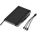 An A5 hard cover notebook, a metal ball pen and a 3-in-1 charging cable are combined in a black, 2-piece presentation box.