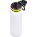 The bottle base is made from strong and durable BPA-free stainless steel with a white powder-coated finish. It has a double-wall vacuum construction, which ensures that liquids inside stay hot or cold for hours.