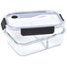 Featuring a glass base with a lockable plastic lid, this food container is ideal for food storage, meal preparation, freezing leftovers, and packing lunches in a safe and hygienic manner. It’s designed with two compartments to separate food. The container features a durable plastic lid with a silicone leak-proof seal and four secure clip-locks. The built-in silicone ventilation plug can be opened to prevent pressure build-up when heating contents in the microwave.