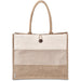 A combination of jute, cotton and juco to give a texture-rich, earth tone effect to this fashionable tote. It features a large button and loop closure, and comfortable cotton rope handles.