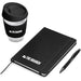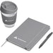 A glass coffee tumbler with a silicone band and lid, an A5 hard cover notebook and a metal ball pen are neatly presented together in a gift box. The pen has a soft, matte finish and reveals a matte, light grey finish when lasered. This set is suitable as a client gift, or for staff and onboarding of new members to the team. A pre-packaged gift set not only looks impressive, but can also be a convenient and practical option when it comes to transport and delivery.