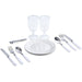 A picnic basket made partially from natural materials, with a solid wood surface lid. Use the lid as a firm and level surface for your drinks, or for cutting bread and food. This sturdy picnic basket is particularly good for a picnic on the beach or on soft grass. It includes cutlery and crockery for two people, as well as a corkscrew. The long webbing handles help you to carry the basket comfortably, while keeping it upright.