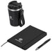 A stainless steel & plastic double-wall tumbler with a secure, screw-on lid and an optional carry loop is combined with an A5 hard cover notebook and a metal ball pen in a kraft gift box. The pen has a soft, matte finish and reveals a matte, light grey finish when lasered. This set is suitable as a client gift, or for staff and onboarding of new members to the team. A pre-packaged gift set not only looks impressive, but can also be a convenient and practical option when it comes to transport and delivery.