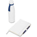 A vacuum water bottle, a notebook and a metal ball pen are neatly presented together in a gift box. The powder coated finish bottle has a double wall stainless steel vacuum construction, which will keep liquids inside the bottle cold or hot for hours. This set is suitable as a client gift, or for staff and onboarding of new members to the team. A pre-packaged gift set not only looks impressive, but can also be a convenient and practical option when it comes to transport and delivery.